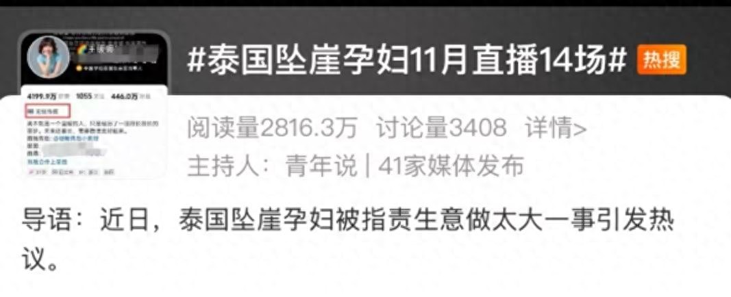 11月份直播14场,签约MCN机构,商品橱窗上架192件商品……12月2日,一则关于“泰国坠崖孕妇11月直播14场”的消息冲上热搜,引发热议。当事人王暖暖在接受封面新闻记者采访时表示,“毕竟人要向前走,打官司、医疗、养孩子样样都需要钱,得自己争气。”